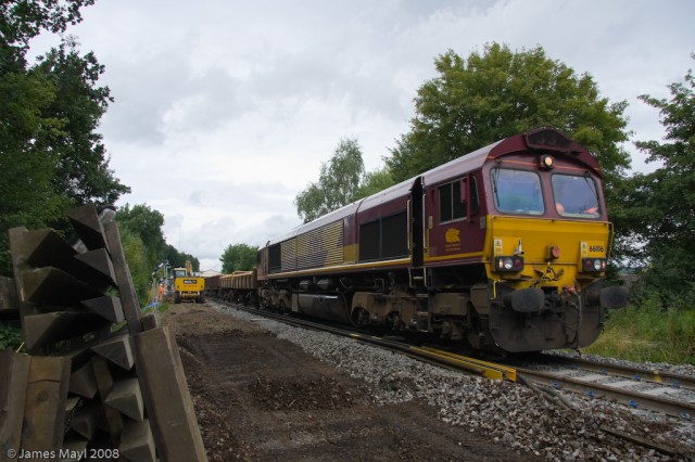 66106 passes the site of the Buckthorne Oak foot crossing, with the boards seen to the left of the frame