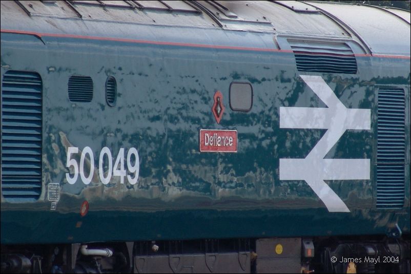 The Number, 'Defiance' Nameplate & Crest, And BR Double Arrow On 50049 - 25th July 2004