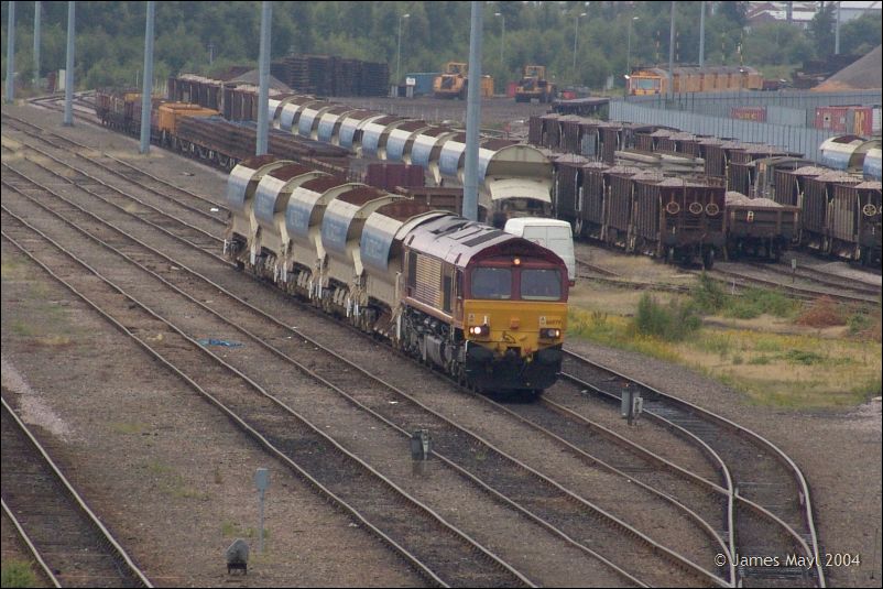 66079 Hauls A Short Train Of Railtrack Hoppers Into Decoy Yard - 30th June 2004