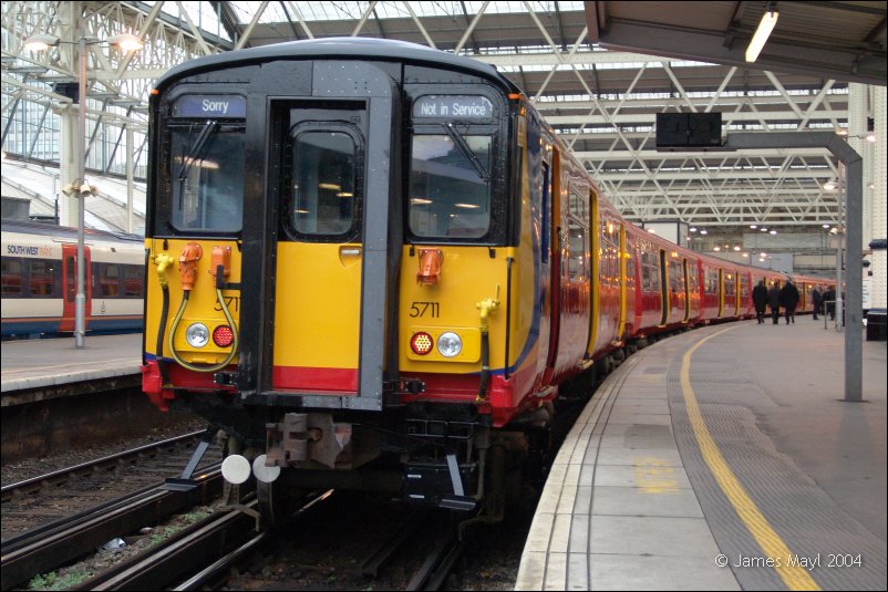 5711 Sits On The Curve Of Platform 13 At Waterloo, Awaiting Departure For Hampton Court - 23rd November 2004