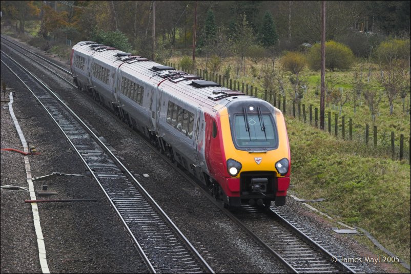 Voyager 220022 heads west through Lower Basildon - 2nd December 2005