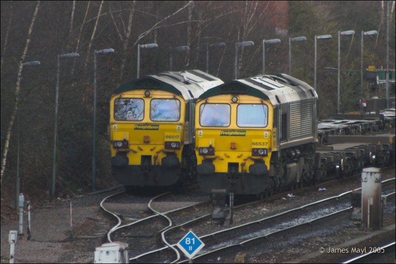 66517 and 66537 stabled in the Redbridge sidings at Southampton Maritime - 31st December 2005