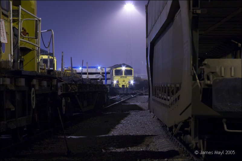 66513 seen between an engineering train, and the consist of 6V14 - 1st April 2005