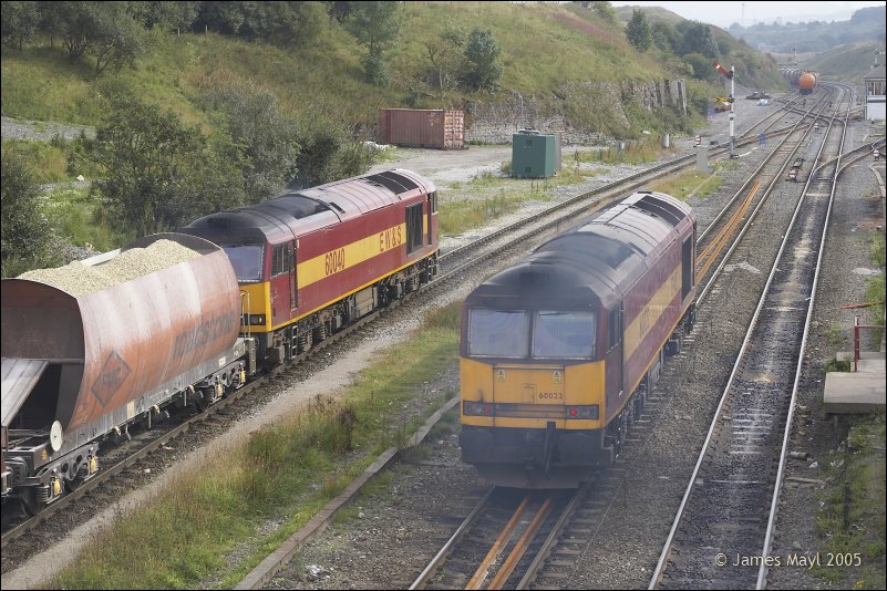 60040 and 60022 clag past the stabling point at Peak Forest - 9th September 2005