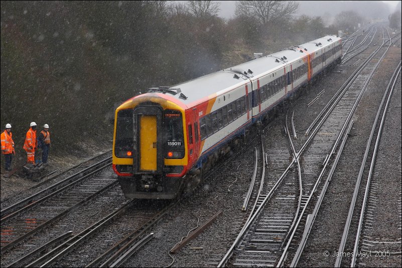 159011 passes Worting Junction on the rear of a Plymouth service - 24th February 2005